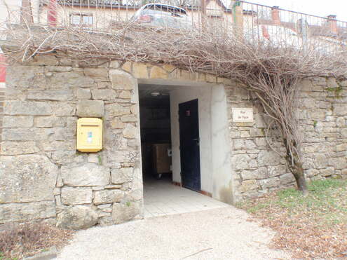 WC publics au fond de la place au bord de la D26, (banc et fontaine proches)