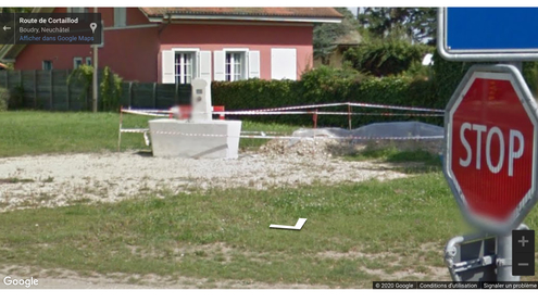 Elle se trouve sur la bande cyclable juste à côté de la route cantonale
