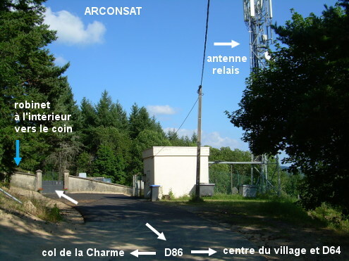 Le cimetière est situé à la périphérie du village à 210 mètres de la D86 qui monte au col de la Charme. 1) En provenance de Palladuc sur la D64 puis la D86 qui commence aussitôt à monter au col de la Charme (en direction de Saint-Priest-la-Prugne), vers la fin du village tourner à droite en suivant la petite flèche ''cimetière''. Continuer tout droit (ignorer tous les embranchements sur la droite) jusqu'au bout de la rue où l'on est alors face au portail du cimetière. N.B. : Il faut pousser le portail très fort pour le débloquer sur les premiers centimètres. On trouvera alors le robinet à l'intérieur sur la gauche (à quatre pas) vers le coin. 2) En descendant du col de la Charme sur la D86, dès que l'on aperçoit au loin le panneau de début de village, il faut anticiper en mettant un petit développement parce que le début de la rue menant au cimetière (il n'y a pas encore de pancarte avec son nom), située côté gauche 60 mètres après le panneau, remonte avec une pente assez soutenue avant de s'adoucir. P.S. : Le macadam avait un aspect neuf début août 2024.