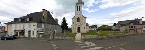 A l'entrée de l'église contre le muret, côté intérieur du muret (pas visible depuis la rue)