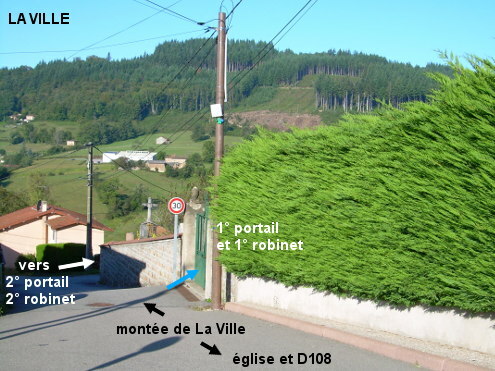 Le cimetière se trouve dans une rue secondaire à proximité de l'église érigée au bord de la D108. Il a deux robinets, un à côté de chacun des deux portails qui donnent dans deux rues perpendiculaires. 1) En provenance de Cours-la-Ville sur la D8 puis la D108E, au carrefour en T avec la D108 tourner à gauche pour aller vers le centre du village. Puis tourner à gauche juste après l'église (c'est son arrière que l'on voit côté D108). Le cimetière est implanté côté droit 80 mètres plus loin au début de la descente. Pour accéder au premier robinet, entrer par le premier portail (juste après la haie arbustive le long de la propriété qui précède le cimetière) : ce robinet est à l'intérieur tout de suite à droite. En cas de problème, on peut chercher le deuxième robinet : descendre encore 30 mètres dans la rue et tourner à l'angle du cimetière dans la rue à droite puis parcourir 40 mètres jusqu'au deuxième portail qui coulisse sur un rail, le deuxième robinet est à l'intérieur et tout de suite à droite. 2) En provenance de Saint-Vincent-de-Reins sur la D9 puis la D108 qui passe au col du Pavillon, tourner à gauche après l'église comme au point 1. 3) En provenance de Belmont-de-la-Loire sur la D31 qui devient D8 et passe au col de la Bûche, puis sur la D108, tourner à droite juste avant l'église érigée côté droit pour trouver ensuite le cimetière. P.S. : Il y a des toilettes de type vespasienne, sans robinet, dans le coin au fond de la petite place piétonne avec l'obélisque du Monument aux Morts qui est implantée au bord de la D108 presque en face de l'arrière de l'église.