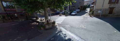 Pile au croisement de la d639 et de la d24E2, sur la place de la fontaine. Source d'eau continue.