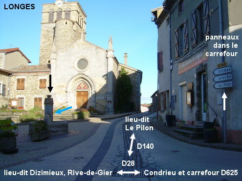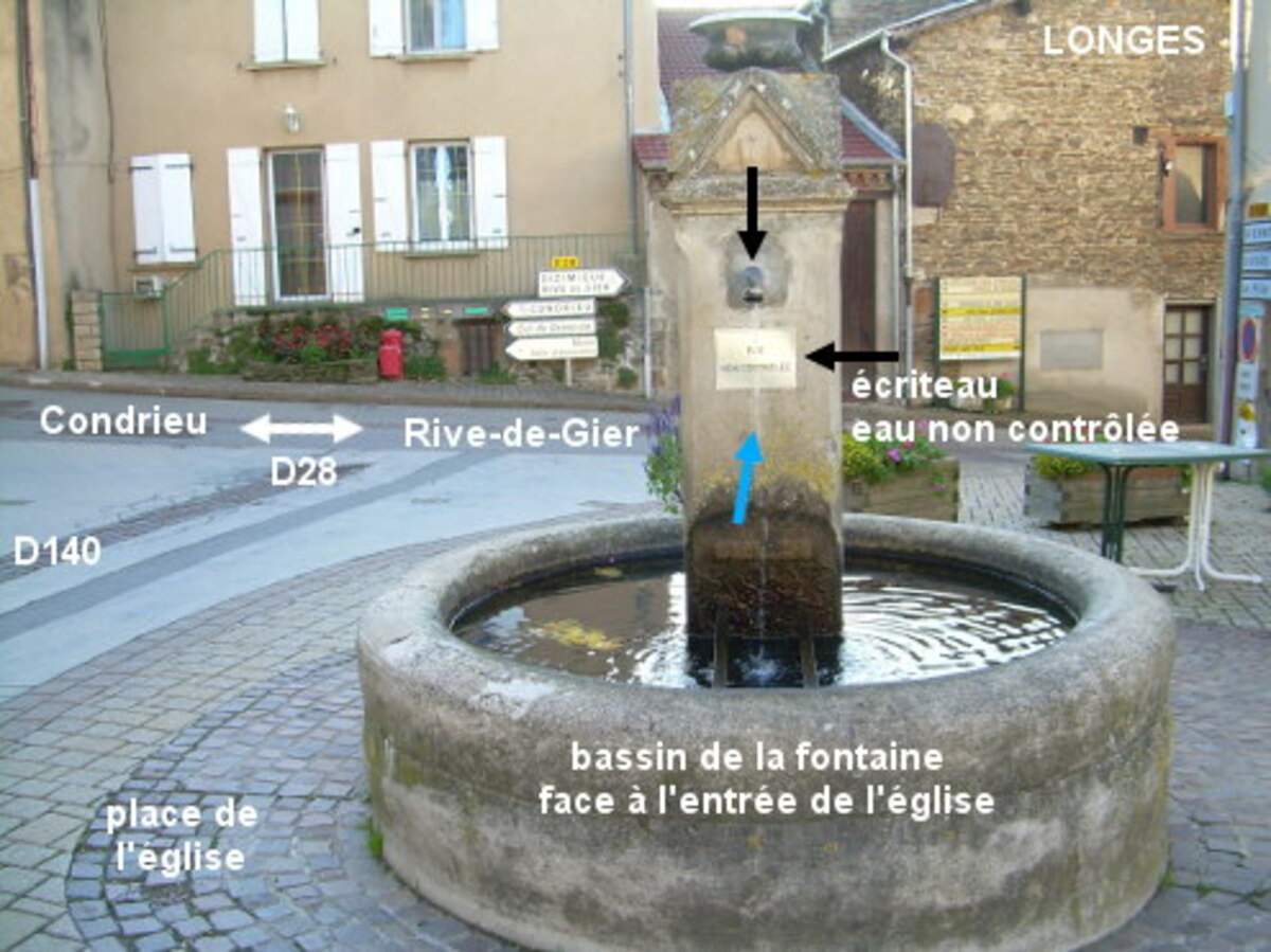 Cette fontaine se trouve sur la petite place face à l'église et à côté du carrefour D140 / D28. N.B. : Un écriteau ''eau non contrôlée'' est apposé sur cette fontaine. En provenance de Condrieu et du col de Chassenoud sur la D28, peu après le carrefour à gauche avec la D625 venant du col de Grenouze (et de Sainte-Croix-en-Jarez à partir de la M78), on verra côté droit derrière la D140 partant en direction du lieu-dit Le Pilon, le bassin circulaire de la fontaine sur la petite place qui est en face de l'église érigée côté gauche peu après le début de la D140.