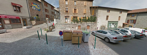 Au centre du village, sur une petite place entre un bar, une épicerie et la pharmacie.
