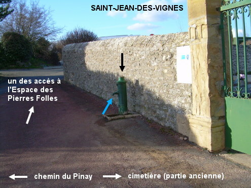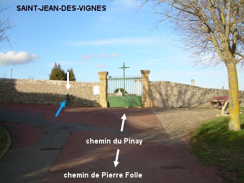 Le cimetière (fléché) est situé à la périphérie nord du village, près du musée « Espace des Pierres Folles » (fléché depuis relativement loin). 1) En provenance de Belmont-d'Azergues sur la D70E juste après avoir quitté la D70, tourner dans la première à gauche en suivant les flèches ''cimetière'' (de couleur blanche) et ''Espace des Pierres Folles'' (brune). Après avoir dépassé le panneau marquant le début du village monter en roulant tout droit pendant un moment. Surveiller le côté gauche après le troisième dos d'âne pour repérer le cimetière en face de la branche gauche d'un carrefour en Y. Monter dans ce chemin du Pinay pour arriver face au portail de la partie la plus ancienne du cimetière (une extension est en cours de construction en février 2026). On trouvera une borne Bayard devant le cimetière à gauche du portail. P.S. : Si on continue dans le chemin du Pinay pour faire le tour du cimetière par la gauche on verra le grand bâtiment de l'Espace des Pierres Folles, un parking et on retournera sur le chemin de Pierre Folle presque en face du carrefour avec le chemin du Lavoir qui descend vers le bourg où il rejoint la D30E. 2) En provenance de Chazay-d'Azergues (suivre les flèches brunes ''Espace des Pierres Folles'') sur la C403 (prendre aussitôt la branche droite du Y) puis la D30E, un moment après l'église érigée côté gauche et après la rue menant à la Mairie, près du lavoir prendre la branche droite du Y (chemin du Lavoir) en suivant les flèches ''cimetière'' et ''Espace des Pierres Folles''. Après avoir dépassé le panneau de fin de village, continuer à monter puis au carrefour en Y inversé (ne plus suivre le fléchage de l'Espace des Pierres Folles dont l'entrée est accessible sur la droite) tourner en épingle à gauche pour repasser un panneau de début de village puis tourner aussitôt en épingle à droite pour monter vers le cimetière implanté à quelques mètres. 3) En provenance de Lozanne sur la D30E, après le carrefour à gauche avec la D70E venant de Belmont-d'Azergues, continuer en direction du bourg. Au sortir du virage à droite tourner en épingle à gauche juste avant le lavoir implanté côté gauche et monter dans le chemin du Lavoir en direction du cimetière comme au point 2.
