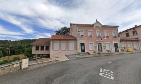 Après la mairie en descendant, il y a des WC publics à droite, le robinet d’eau potable se trouve sous le bâtiment avec des piliers.