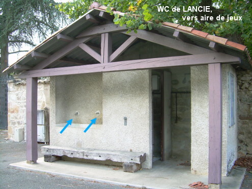 Ces toilettes (peu visibles depuis la route) sont situées au fond d'une place arborée sur laquelle il y a une aire de jeux, toute en longueur au bord de la D119E2 direction Fleurie. 1) Sur la D119E2 en provenance de Fleurie (à Fleurie, près de l'intersection D32 / D68, prendre la rue de Wettolsheim), on verra la place des Pasquiers sur le côté droit (l'aire de jeux est située après les arbres qui la masquent). Prendre la bretelle qui passe à droite de la place pour arriver 40 mètres après au niveau du bâtiment des toilettes contre le mur côté droit. 2) En provenance de Corcelles-en-Beaujolais sur la D119, à l'intersection avec la D86, continuer tout droit en direction de Fleurie (D119E2), puis quand on voit côté gauche le poteau d'un arrêt de bus (l'abribus est installé côté droit) puis l'aire de jeux, tourner à gauche juste avant l'arrêt de bus puis aussitôt à droite pour longer l'arrière de la place et arriver aux toilettes côté gauche 70 mètres plus loin.