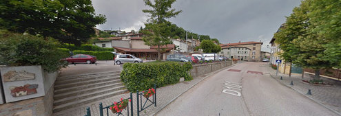 Sur la place principale du village qui surplombe la route, en face de l'auberge