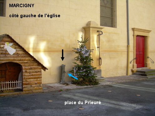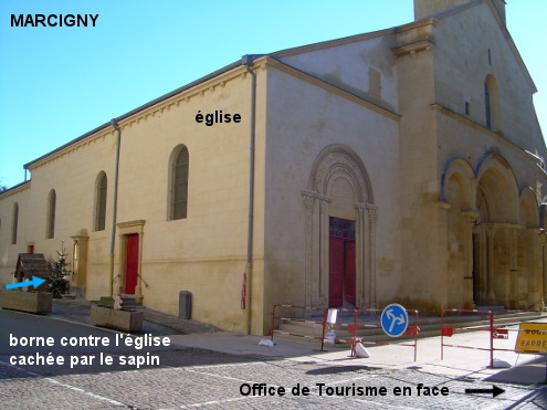 Cette borne Bayard se trouve contre le côté gauche de l'église située en face de l'Office de Tourisme (fléché). N.B. : Il faut actionner longtemps la molette droite d'arrière en avant pour faire couler l'eau. 1) En provenance de Sarry sur la D108, au carrefour en T tourner à gauche puis au carrefour avec les feux tricolores traverser la D989 pour suivre la direction de l'Office de Tourisme tout droit (rue Général de Gaulle, tronçon en sens unique). Peu après, on débouche sur une place en face de l'Office de Tourisme, avec à droite un parking (place des Halles) et à gauche l'église (place du Prieuré). Tourner à gauche pour longer le côté gauche de l'église et trouver la borne vers son milieu. P.S.1 : Un fléchage indique des WC à proximité (sans lavabo ni robinet) qui se trouvent au fond d'une cour ouverte vers le musée Tour du Moulin et accessible par la rue des Dames. P.S.2 : Si on repart en tournant le dos à l'entrée de l'église (rue Chevalière, en sens unique), on débouchera sur une très grande place (place du Cours) et en longeant sa droite on rejoindra la D989. 2) En provenance de Saint-Julien-de-Jonzy sur la D8, on arrivera à un carrefour où il faudra tourner à droite direction Office de Tourisme (rue Général de Gaulle). On arrivera ensuite dans l'autre sens vers l'Office de Tourisme, sis côté gauche avec l'avant de l'église côté droit. Donc tourner à droite après l'église pour trouver la borne contre celle-ci.