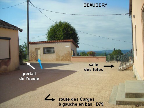 Ces toilettes sont situées à côté de l'école et de la salle des fêtes, à 240 mètres de la D79. Sur la D79 en direction de Saint-Bonnet-de-Joux, 80 mètres après avoir passé l'église côté droit, tourner à droite dans la route des Carges en suivant les flèches ''école'' et ''salle des fêtes''. Monter pendant 190 mètres, tourner à droite dans la large allée goudronnée (avant la flèche indiquant le parking en surplomb), suivre le L à droite, le bâtiment et la terrasse de la salle des fêtes sont à droite, le portail d'entrée de l'école est au fond à gauche (à droite du bâtiment sis au n° 200). Le petit bâtiment des toilettes (très anciennes mais en service) est à droite du portail de l'école.