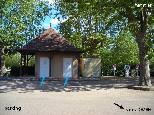 Ces toilettes sont situées au fond d'un immense parking accueillant aussi les camping-car, situé à l'entrée de la ville sur la D979B juste après le pont sur la Loire et à côté d'un grand carrefour avec feux tricolores où il y a sur la gauche la D979 direction Bourbon-Lancy, tout droit la D979 direction Mâcon, et sur la droite la direction du centre-ville. En provenance de Chassenard par la D169, au carrefour en T prendre à droite un bout de route à grande circulation (à gauche c'est la direction de Dompierre-sur-Besbre), franchir le pont sur la Loire, et juste après le panneau marquant le début de la ville, entrer à droite sur l'immense parking. Se diriger en diagonale vers la gauche et le fond pour trouver le petit bâtiment des toilettes (à 60 mètres de la D979B). N.B. : Pour faire couler l'eau dans les lavabos, appuyer sur le bouton-poussoir situé sur le mur au-dessus du lavabo et à côté de la buse d'écoulement de l'eau.