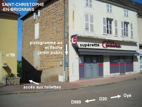 Ces toilettes sont situées au bord d'une allée piétonne menant au ''jardin public'' (une aire de jeux et un terrain de basket) qui est accessible depuis la D20 en direction d'Oyé. Sur cette route, 290 mètres après le carrefour avec la D989, après le carrefour à gauche avec la rue desservant le foirail (il y a une halle couverte rouge sombre), après la Mairie implantée côté gauche, entre le n°56 Grande Allée de Tenay et une supérette, on verra une allée au début de laquelle une flèche indique le jardin public, accompagnée du pictogramme des toilettes. Descendre cette allée pour trouver l'entrée des toilettes côté gauche à l'endroit où l'allée s'élargit. N.B. : Le lavabo est trop petit mais à droite de celui-ci (un peu en dessous) il y a un robinet (dans le coin entre le lavabo et le mur).