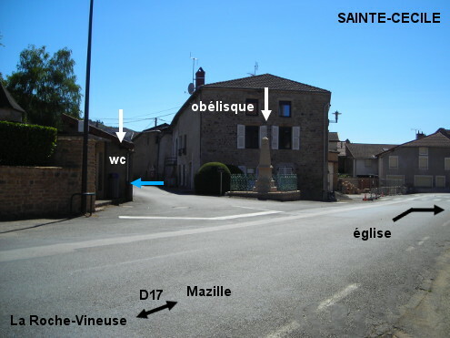 Les toilettes sont situées à côté de l'angle de la D17 avec la petite route menant au lieu-dit Les Belouzards, en face d'une obélisque, à proximité de l'église. Sur la D17 en direction de La Roche-Vineuse (et de Mâcon), peu après l'église érigée côté gauche, on verra côté droit face à l'obélisque implantée dans le triangle entre les deux rues, le petit bâtiment des toilettes à droite d'un abribus.