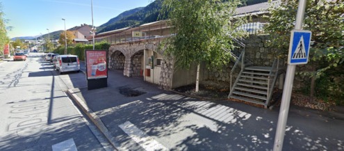 Sur la route principale - à droite en montant - avant la gare