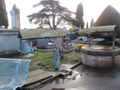 Robinet à la porte du cimetière, Avenue de Linières à L’Isle-sur-Tarn, près du parcours de la Véloroute Vallée du Tarn V85 (qui passe à 1km sur l’autre rive du Tarn)