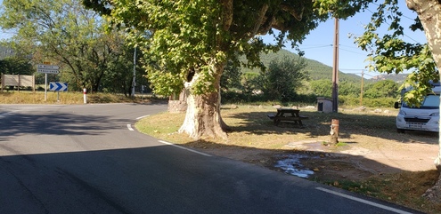 La Borne Fontaine est à 1,3 km du village en direction du Muy par la D47. Table de pique-nique juste en face de la Chapelle.
