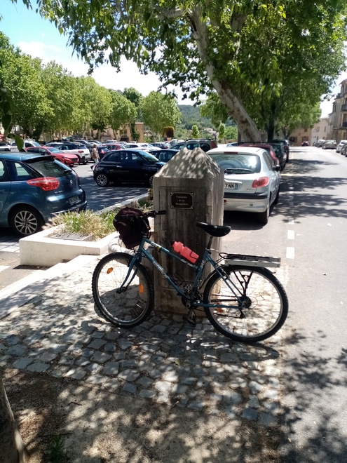 Au bord de la grande place rectangulaire, sous les platanes, direction Saint Maximin