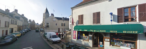 La borne se situe sur le parvis de la mairie, légèrement sur le côté.
