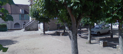 La fontaine est sur le côté de la mairie, au coin des marches. Elle est caché de la route principale et il faut faire le tour.